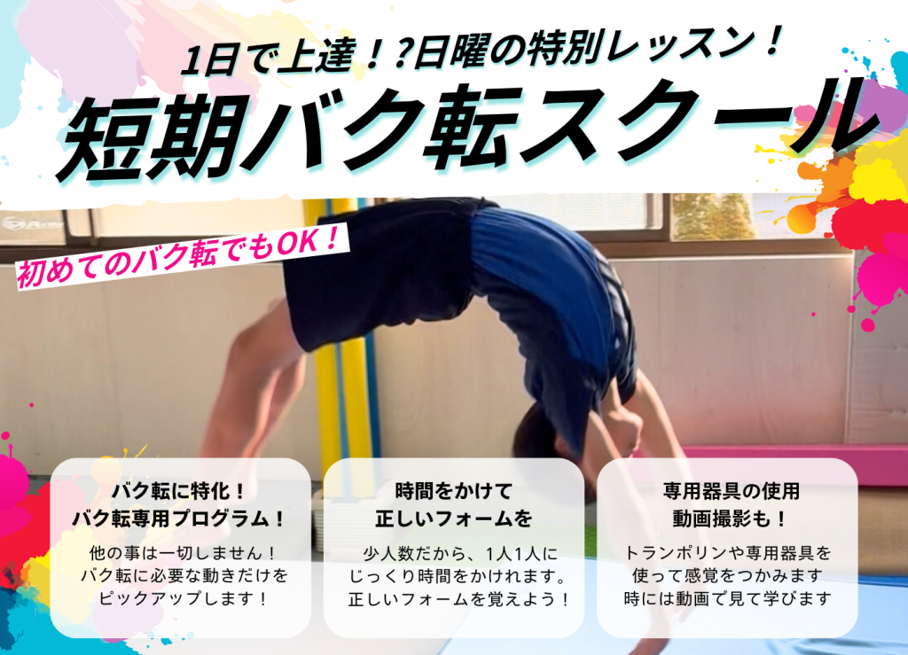 | 焼津教室 (アクロバット) | 経験者 | 木/19:00~ | 高校体育館 |